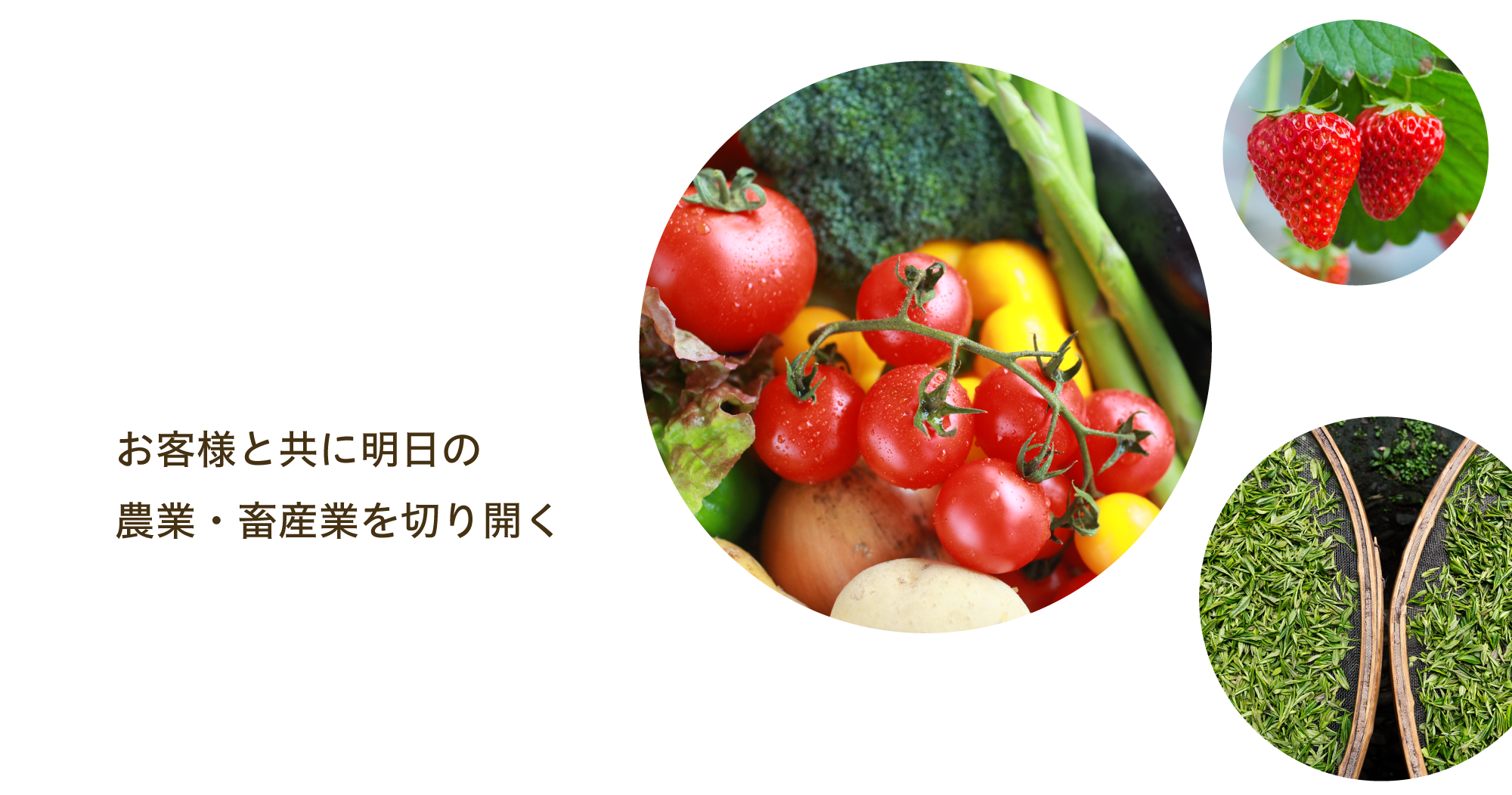 お客様と共に明日の農業・畜産業を切り開く 「循環型社会のモデルを構築したい」「みんながハッピーになれる自然と共生した町を創造したい」そして、「食の安心・安全にこだわりたい」そんな想いで私たちは会社を立ち上げました。